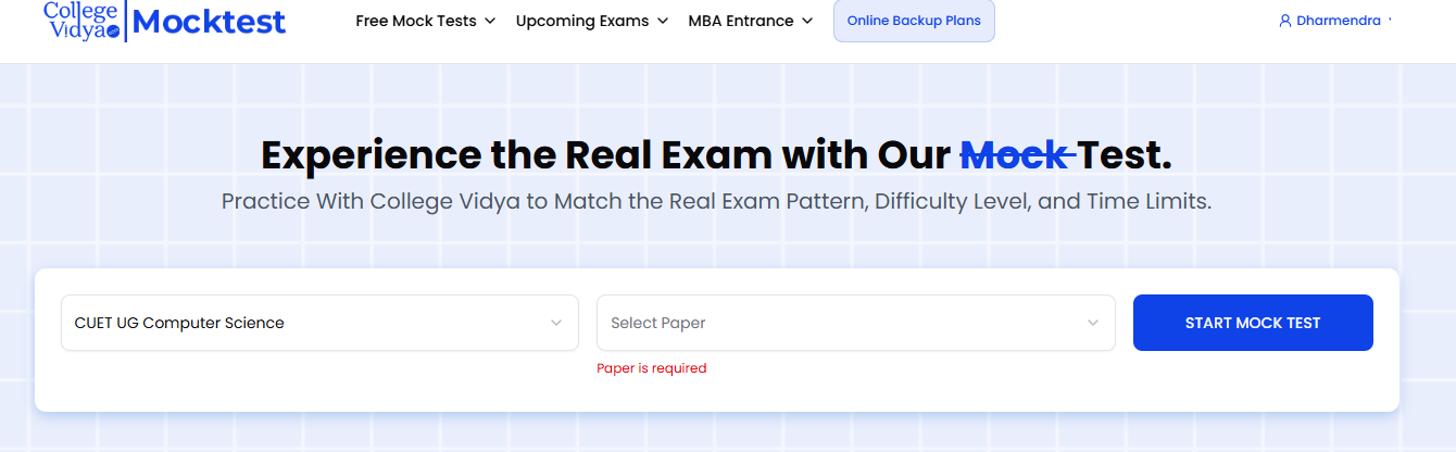 College Vidya’s Mock Test Dashboard