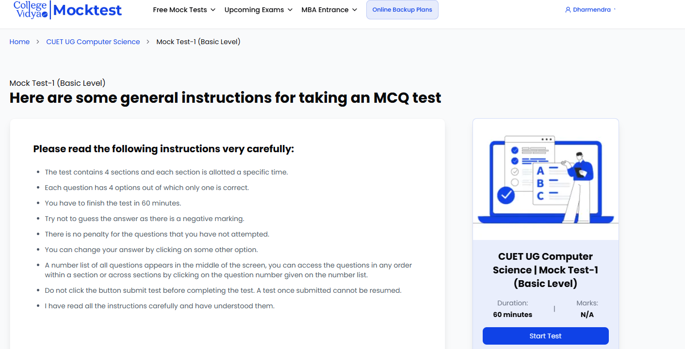 At College Vidya, we provide CUET UG Computer Science Mock Tests that are specifically created to closely reflect every aspect of the CUET exam, including difficulty level, exam duration, question format, marking scheme, and syllabus coverage.