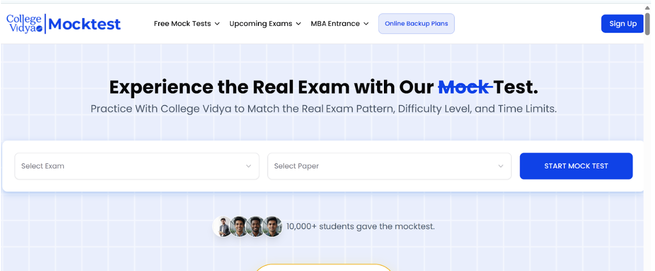 College Vidya’s Mock Test Dashboard